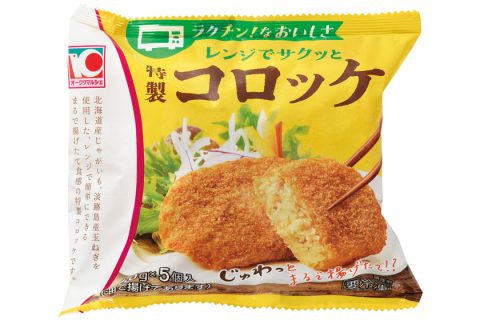 北海道産じゃがいも、淡路島産玉ねぎを使用した、レンジで簡単にできるまるで揚げたて食感の特製コロッケです。