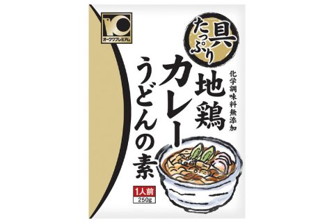 地鶏、玉ねぎ、油揚げの具材入り。