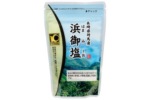 地元の間伐材をバイオマスボイラーの蒸気熱に使用し、環境に配慮した平釜製法で対馬の海水を煮詰めた旨みと甘みのある平釜塩です。
