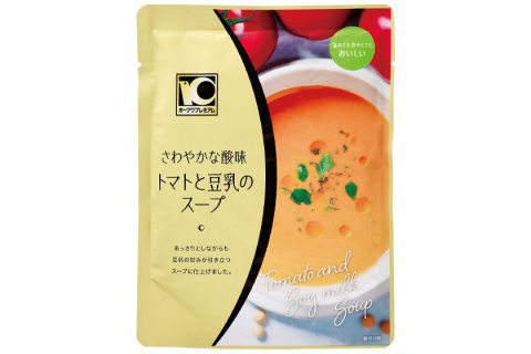 トマトの酸味に香味野菜を加え、味わい深い豆乳を合わせました。