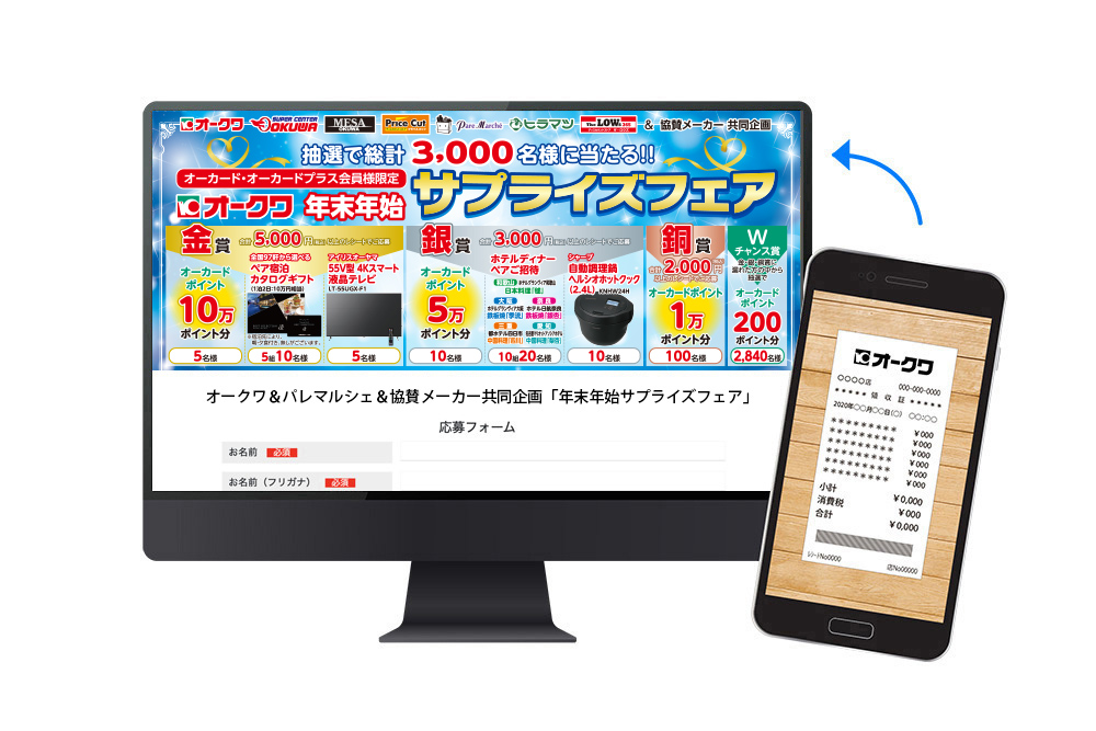 上記1の方法で再発行された紙レシートを1枚の写真に撮って応募するか、ダウンロードした