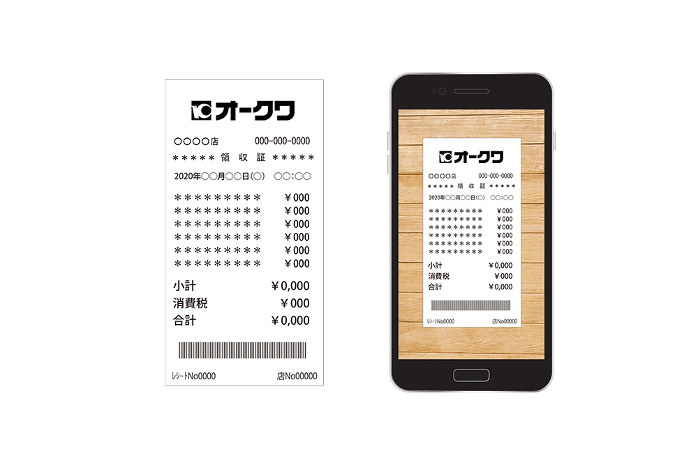 サービスカウンターまたはレジで「紙レシート」が必要な旨、お申出いただき「電子レシート」を係員におみせいただければ、紙レシートを「再発行」いたします。(電子レシートで一度発行されているため、紙レシートは「再発行」となります。)