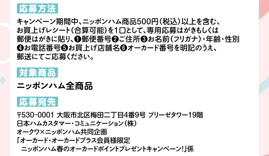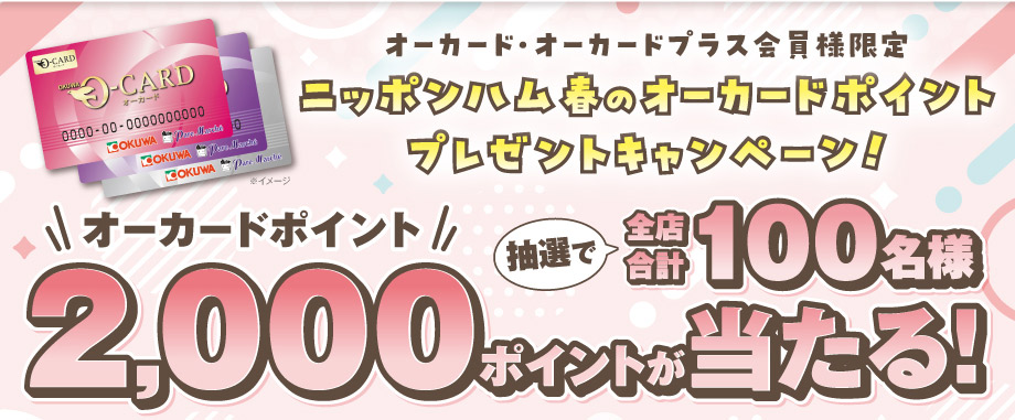 ニッポンハム春のオーカードポイントプレゼントキャンペーン(有効期間:3/21から4/20まで※応募締切:4/27まで)